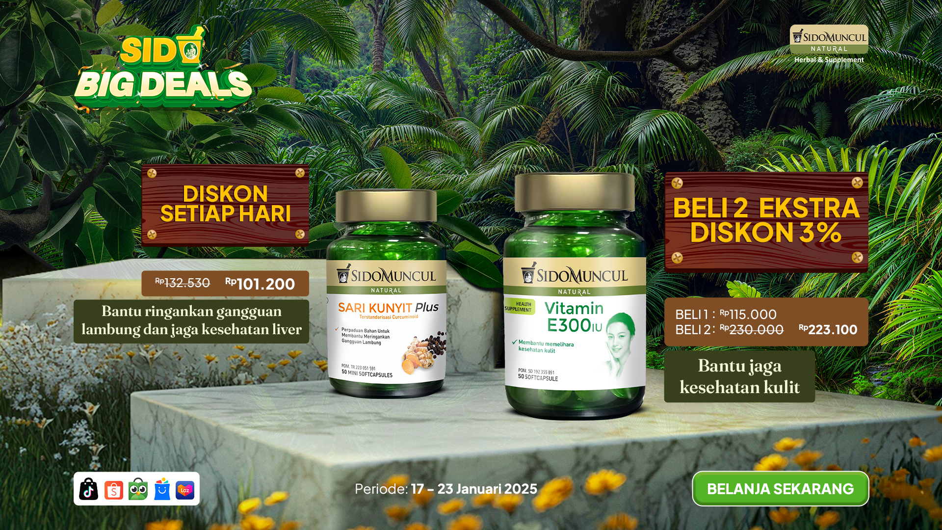 Sido Muncul Natural siap menjadi pilihan suplemen terbaik untuk menjaga kesehatan tubuhmu, baik untuk saat ini maupun di masa mendatang